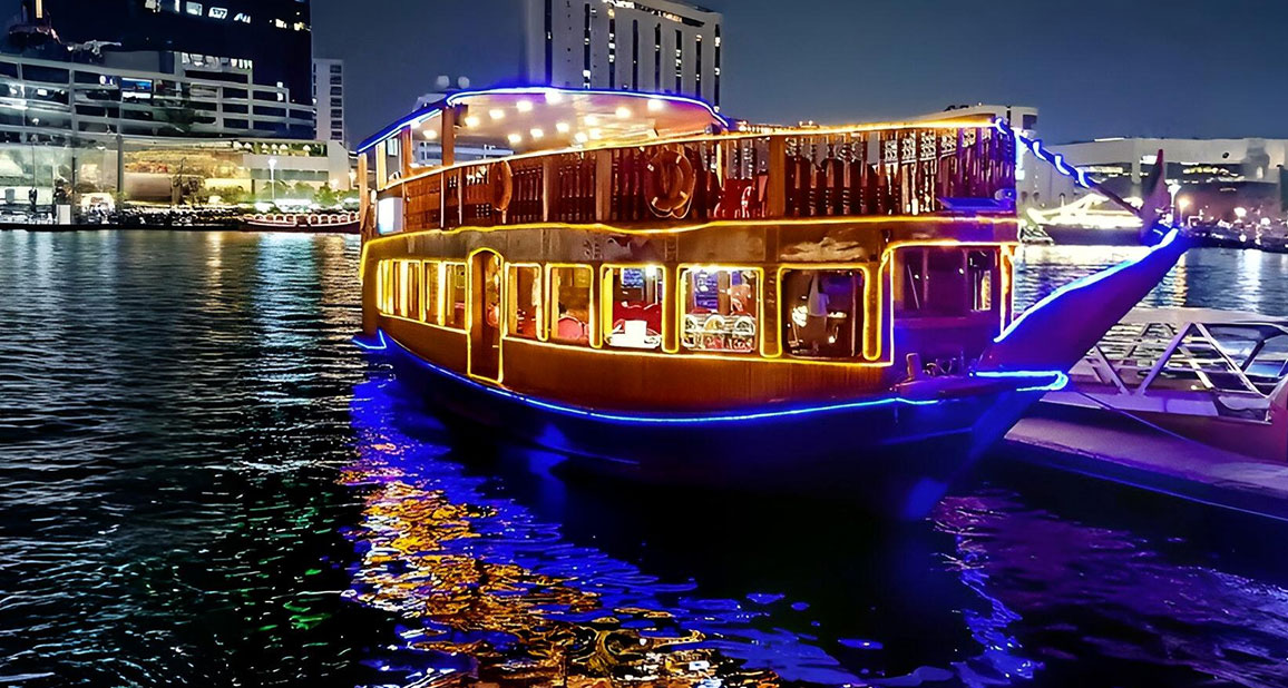 Experience a 2-hour traditional cruise along Dubai Creek with buffet dinner and cultural live shows.
